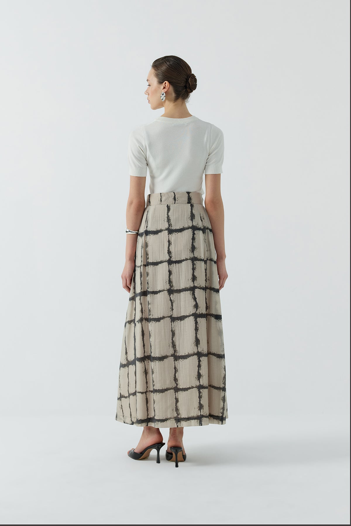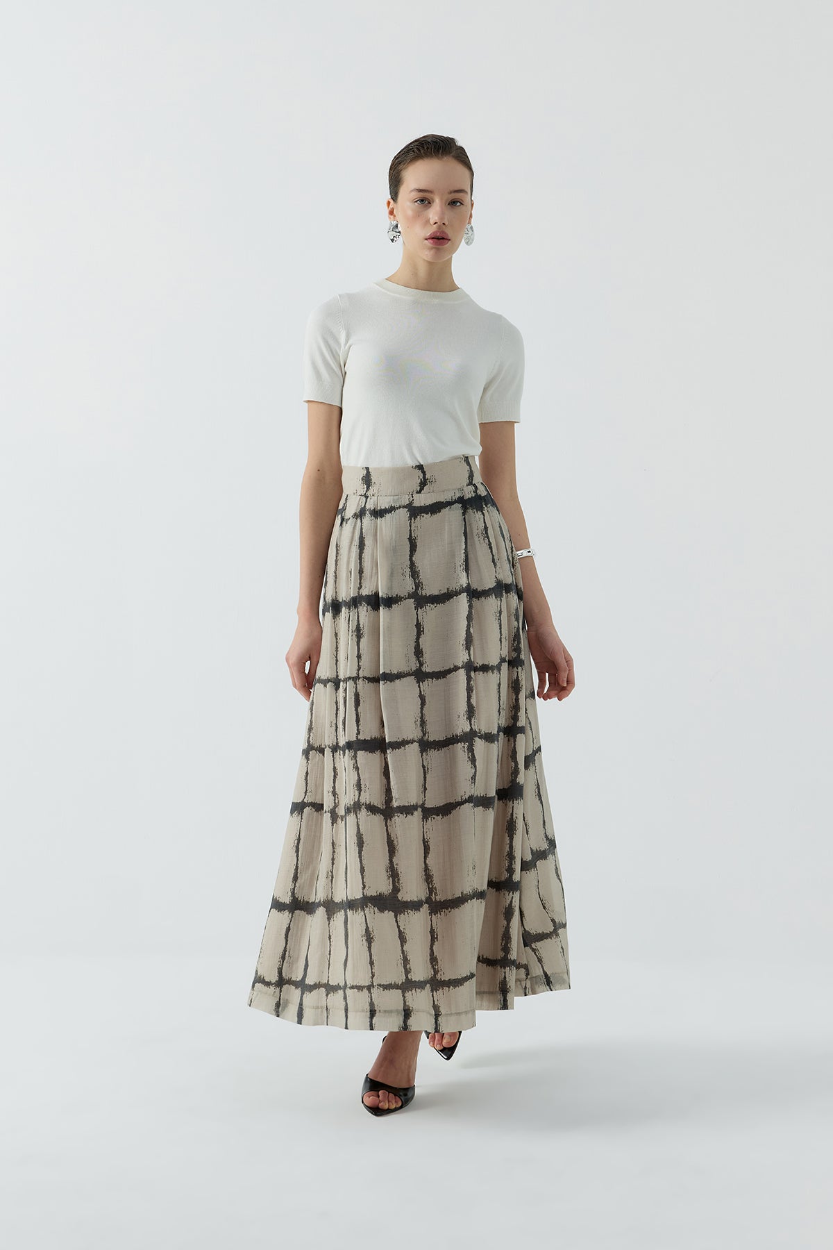 BEJ DESENLİ PİLELİ ETEK - Clande