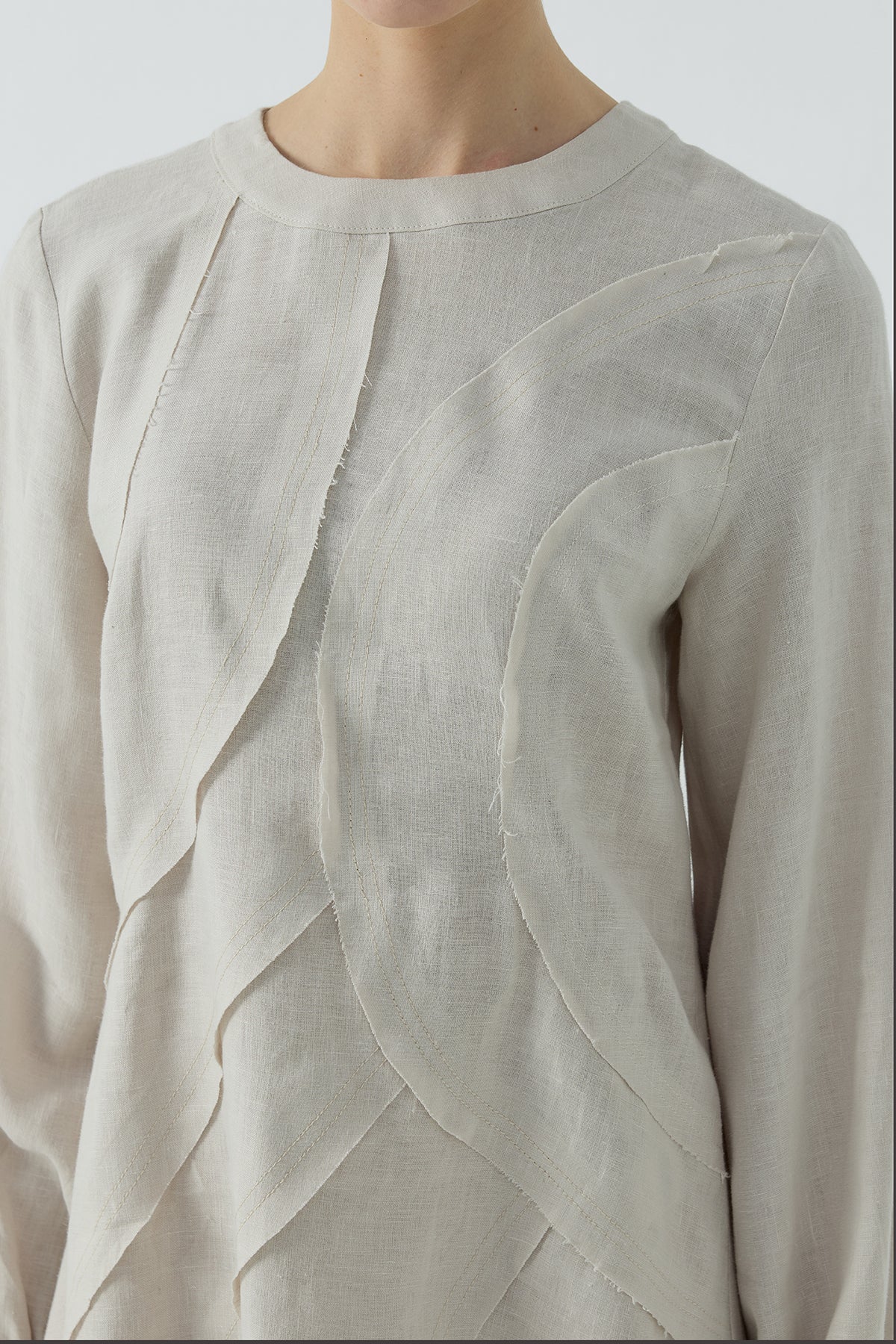 BEJ DIŞTAN DİKİŞLİ KETEN ELBİSE - Clande