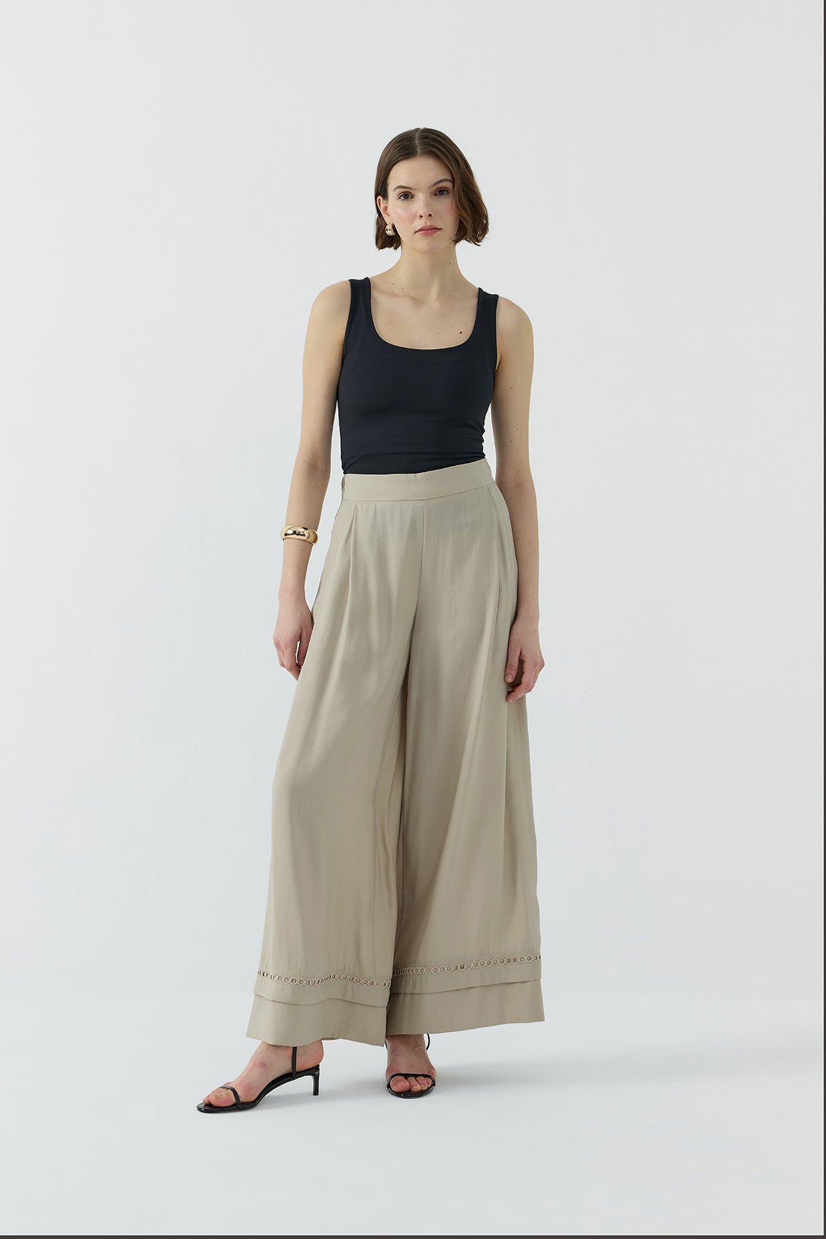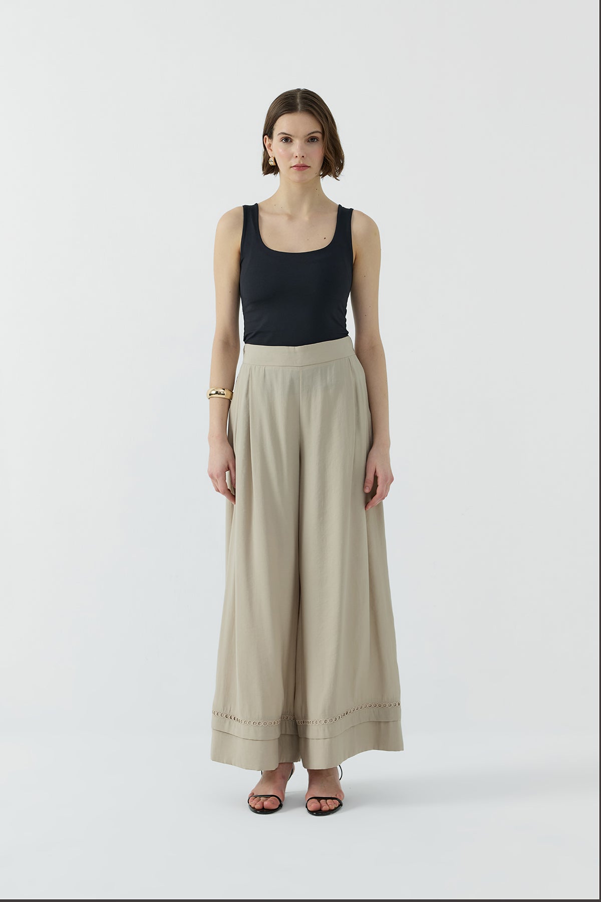 BEJ MODAL GENİŞ PANTOLON - Clande