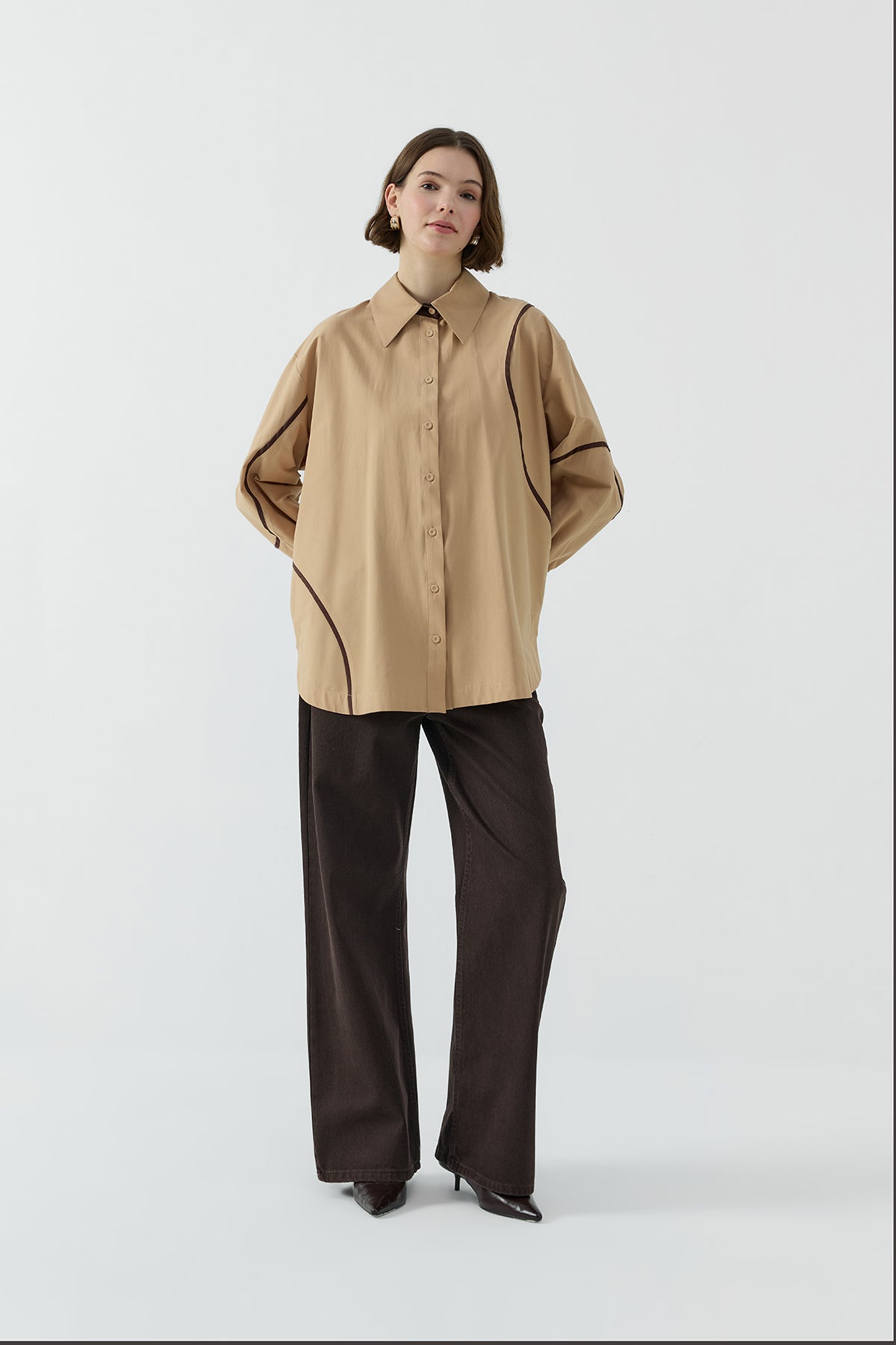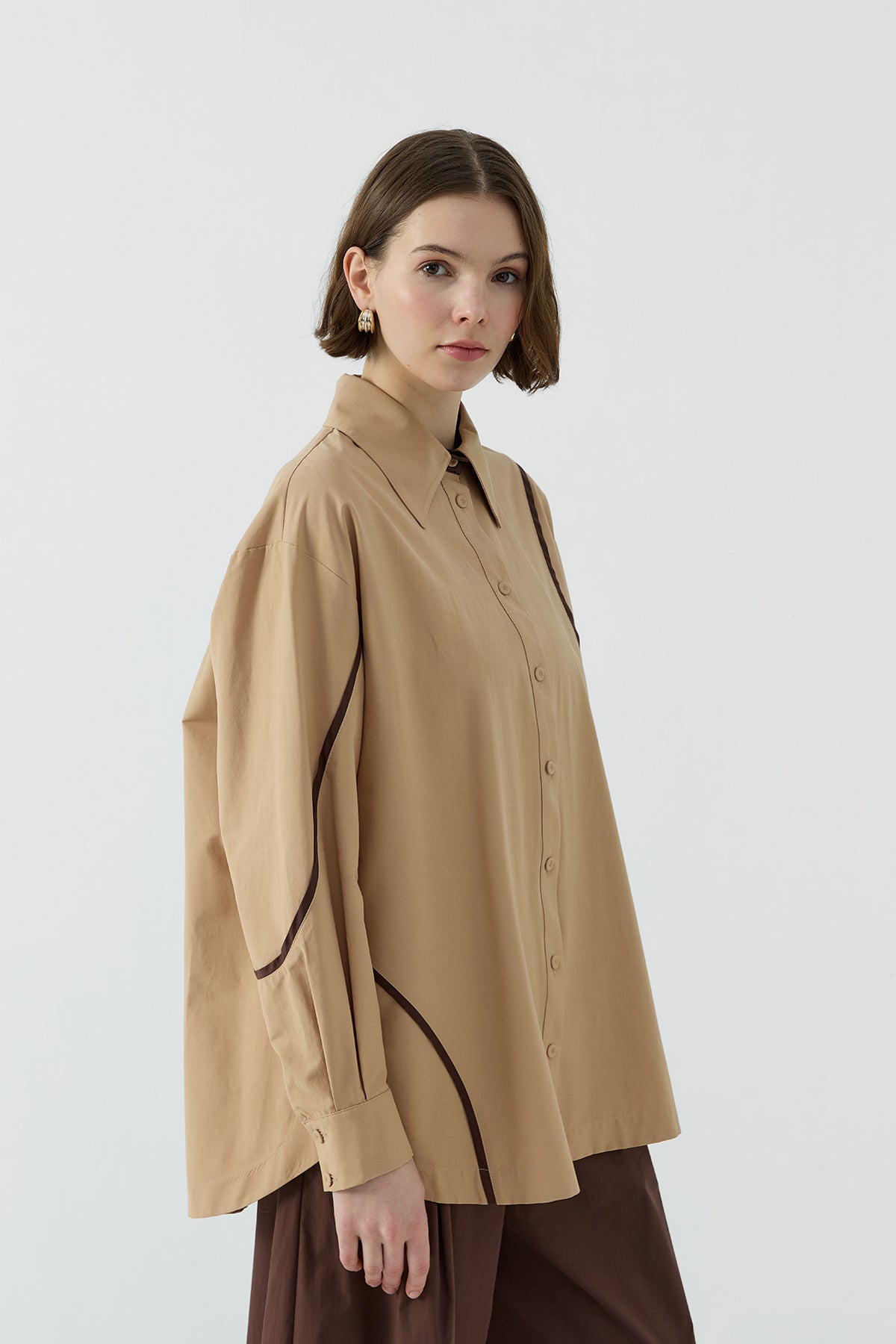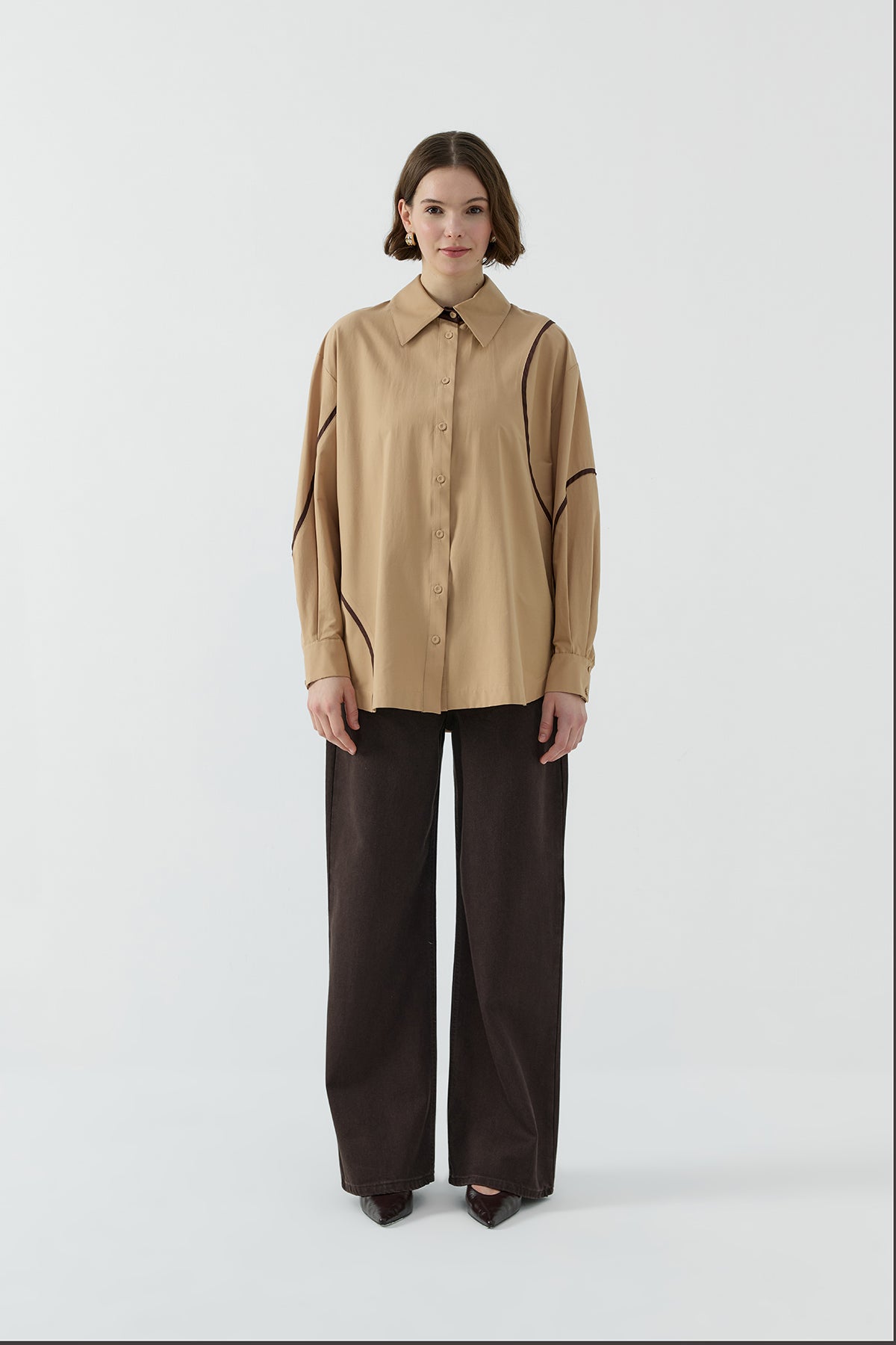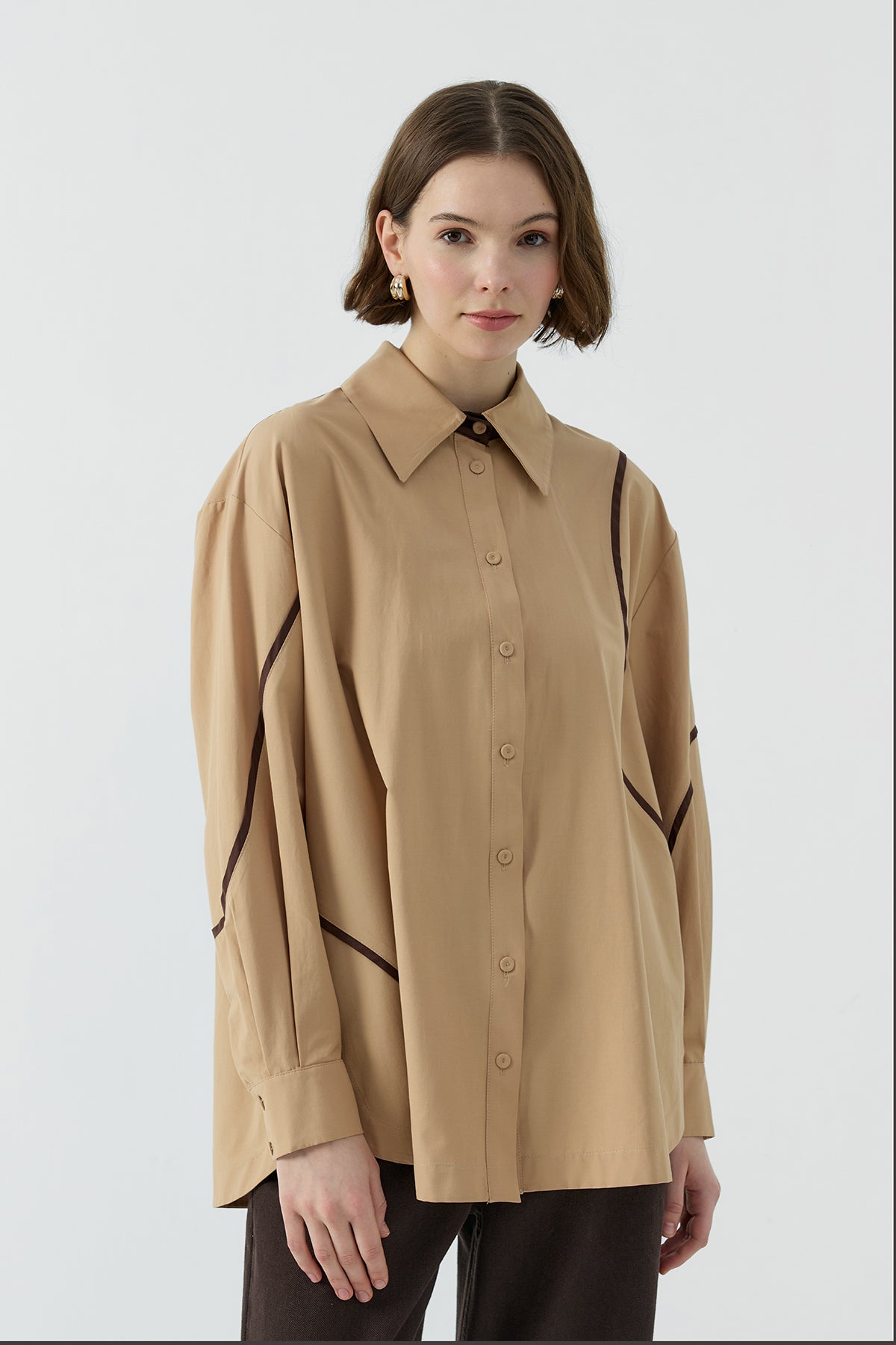 CAMEL BİYE DETAYLI GÖMLEK
