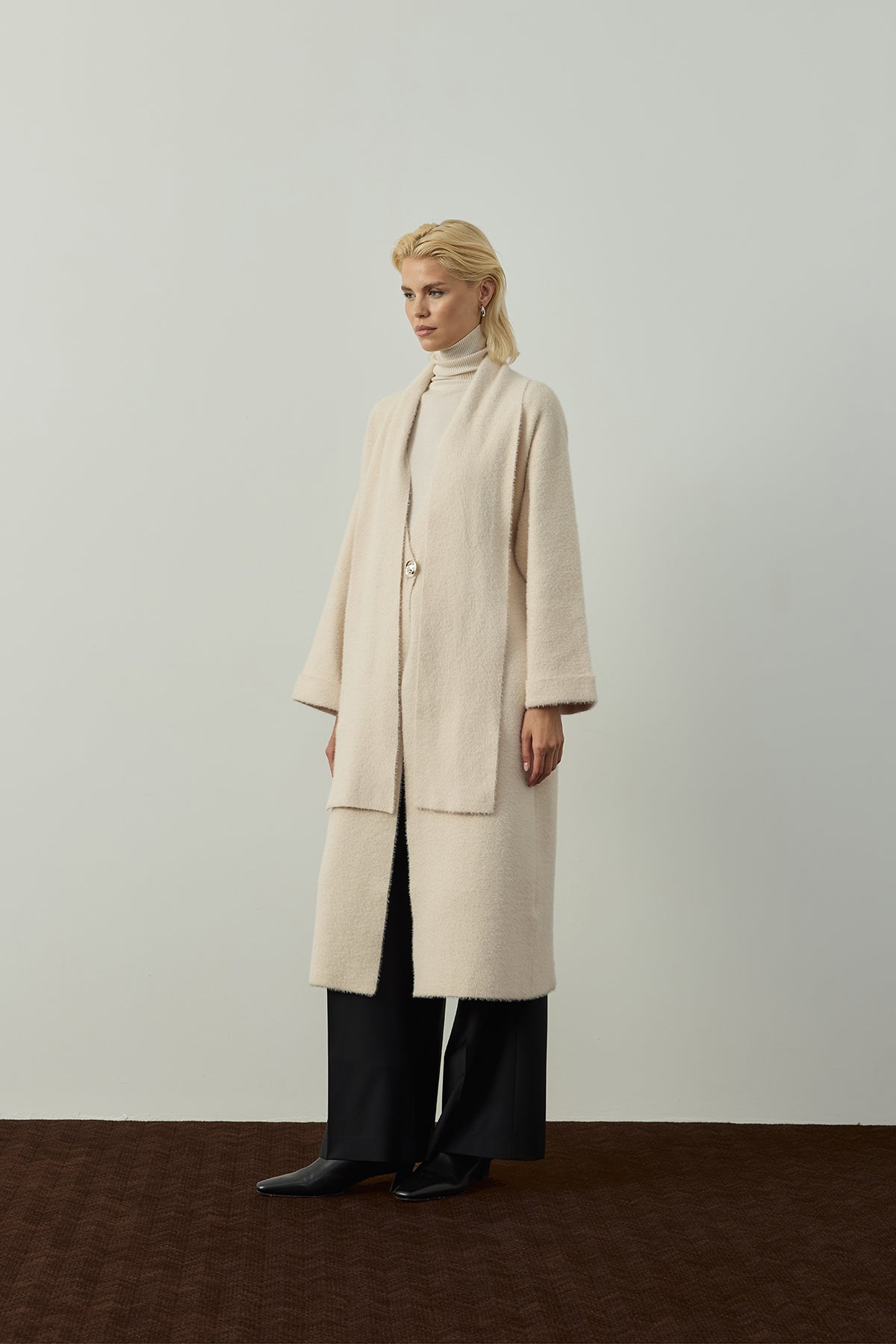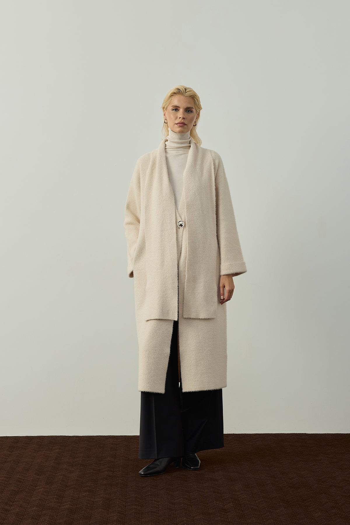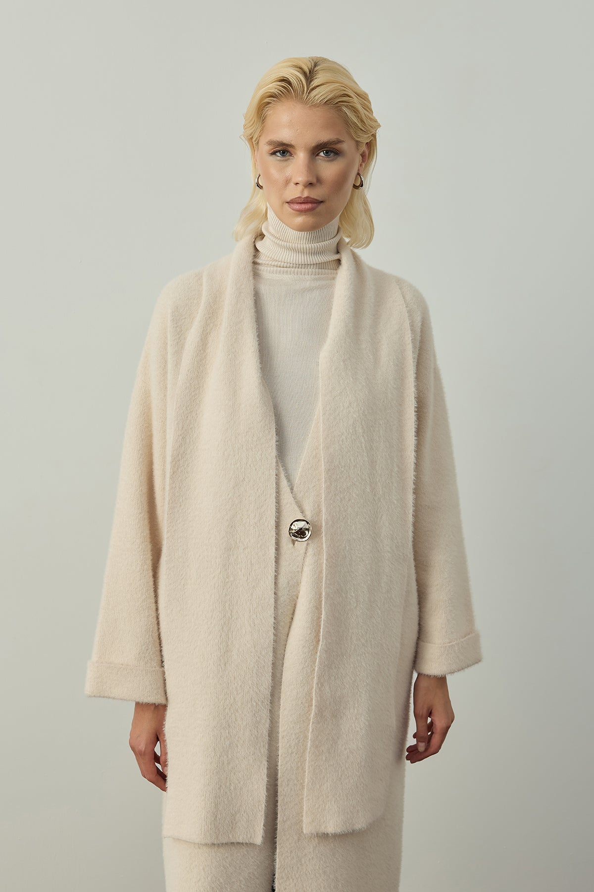 EKRU ATKI DETAYLI TRİKO UZUN HIRKA