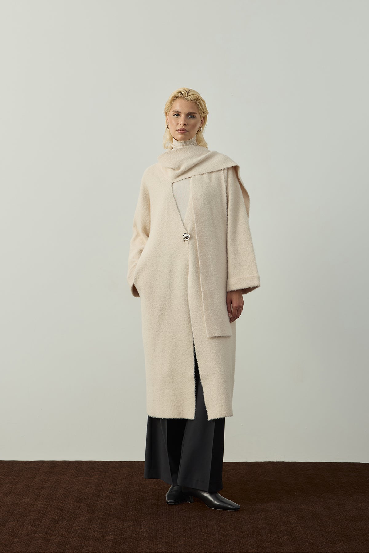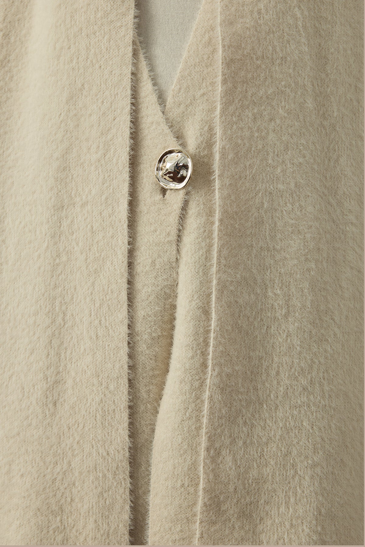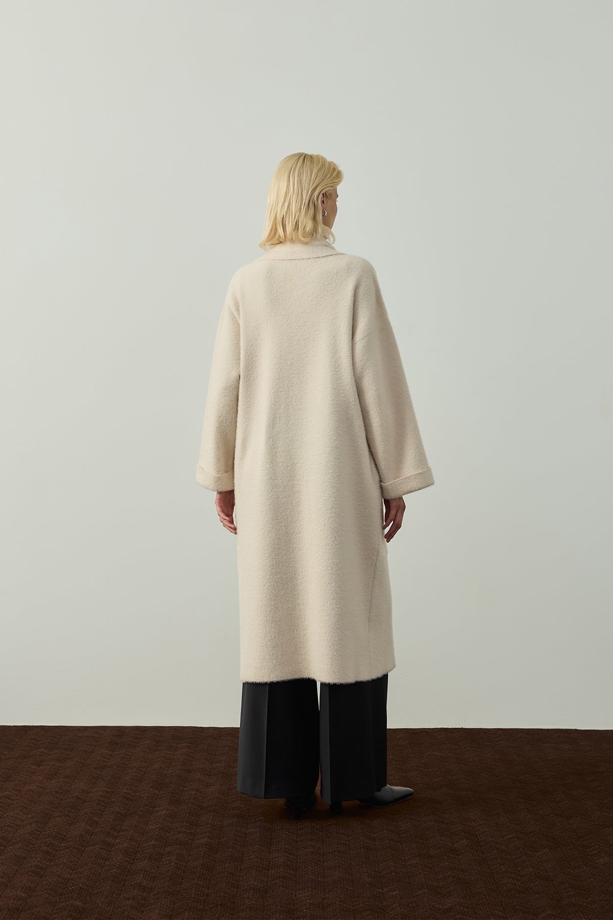 EKRU ATKI DETAYLI TRİKO UZUN HIRKA