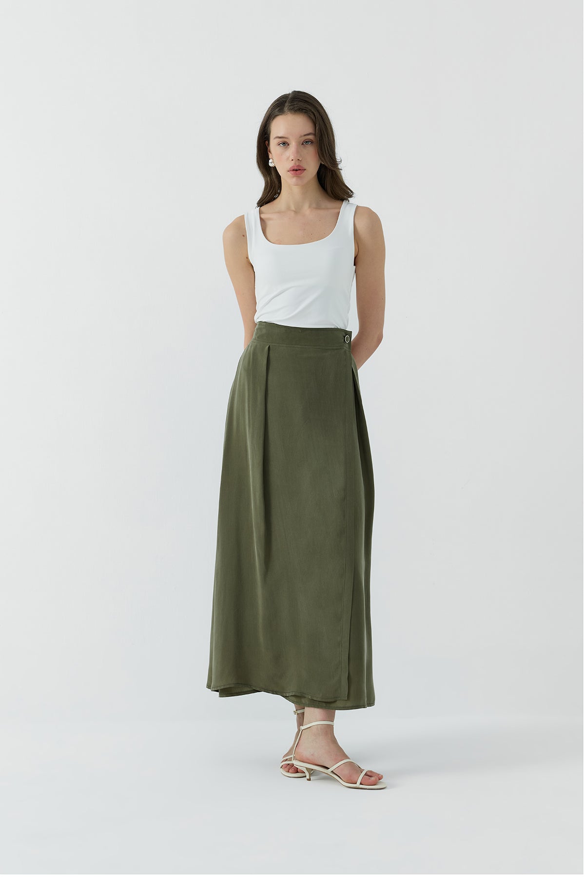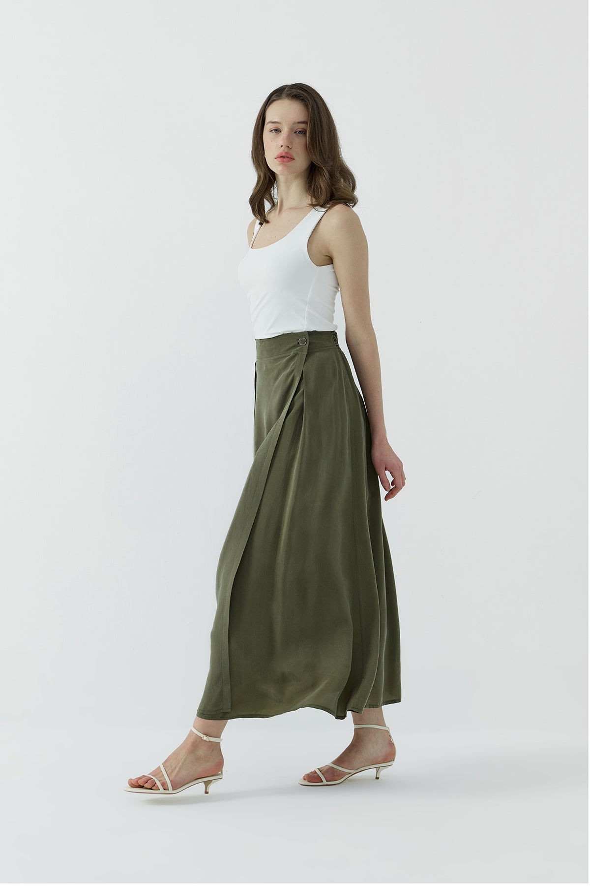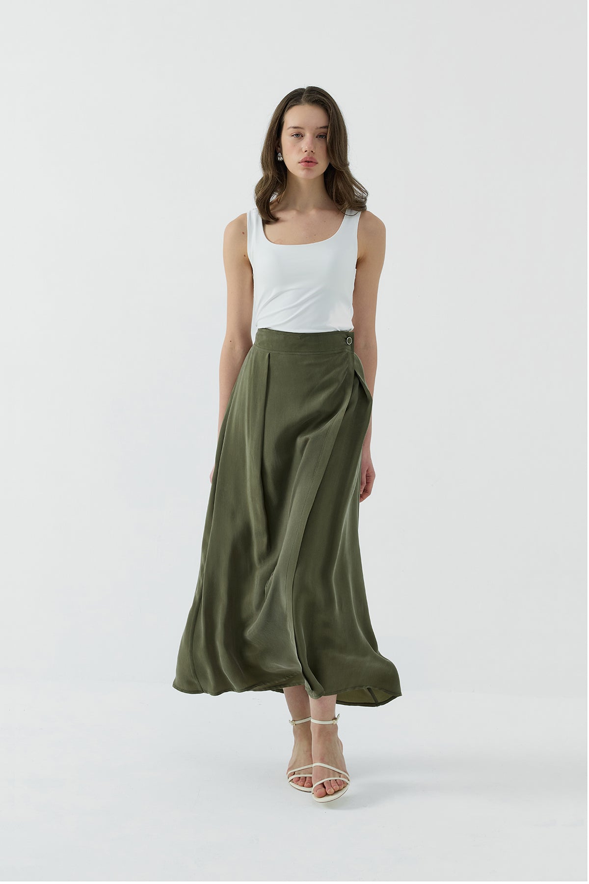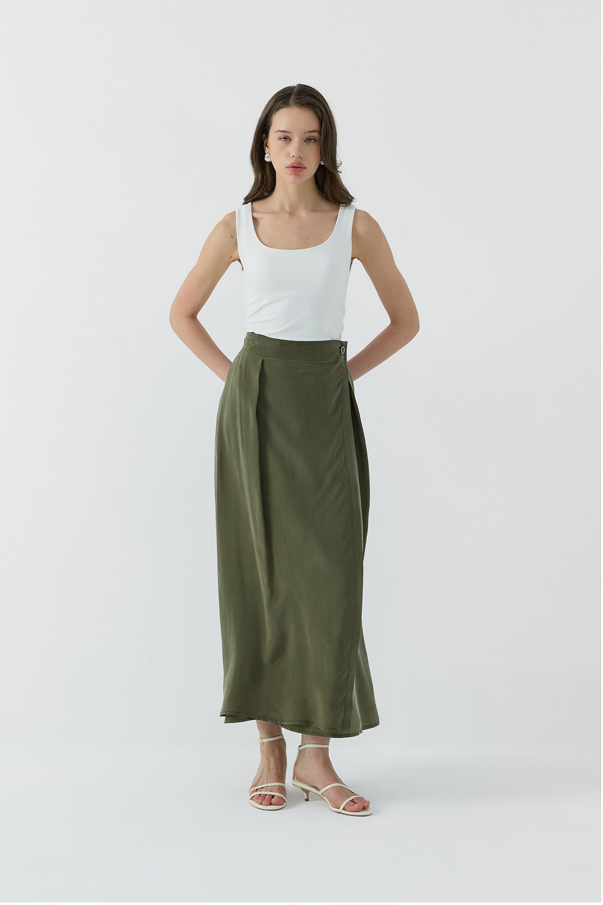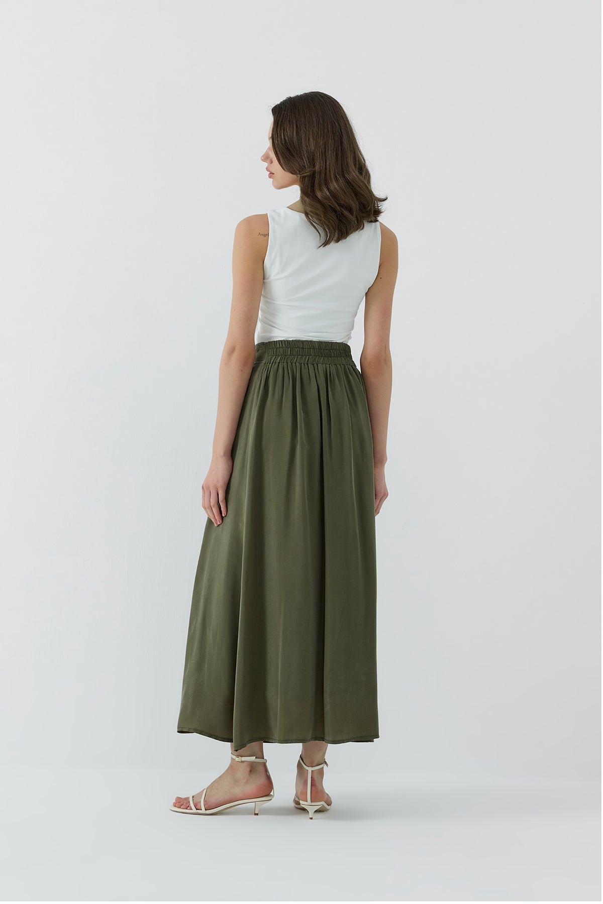 HAKİ İPEK CUPRO KATMANLI ETEK - Clande