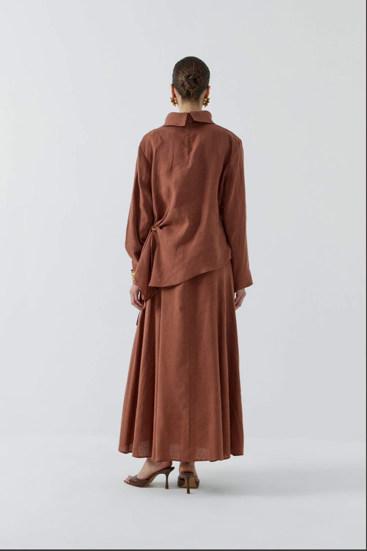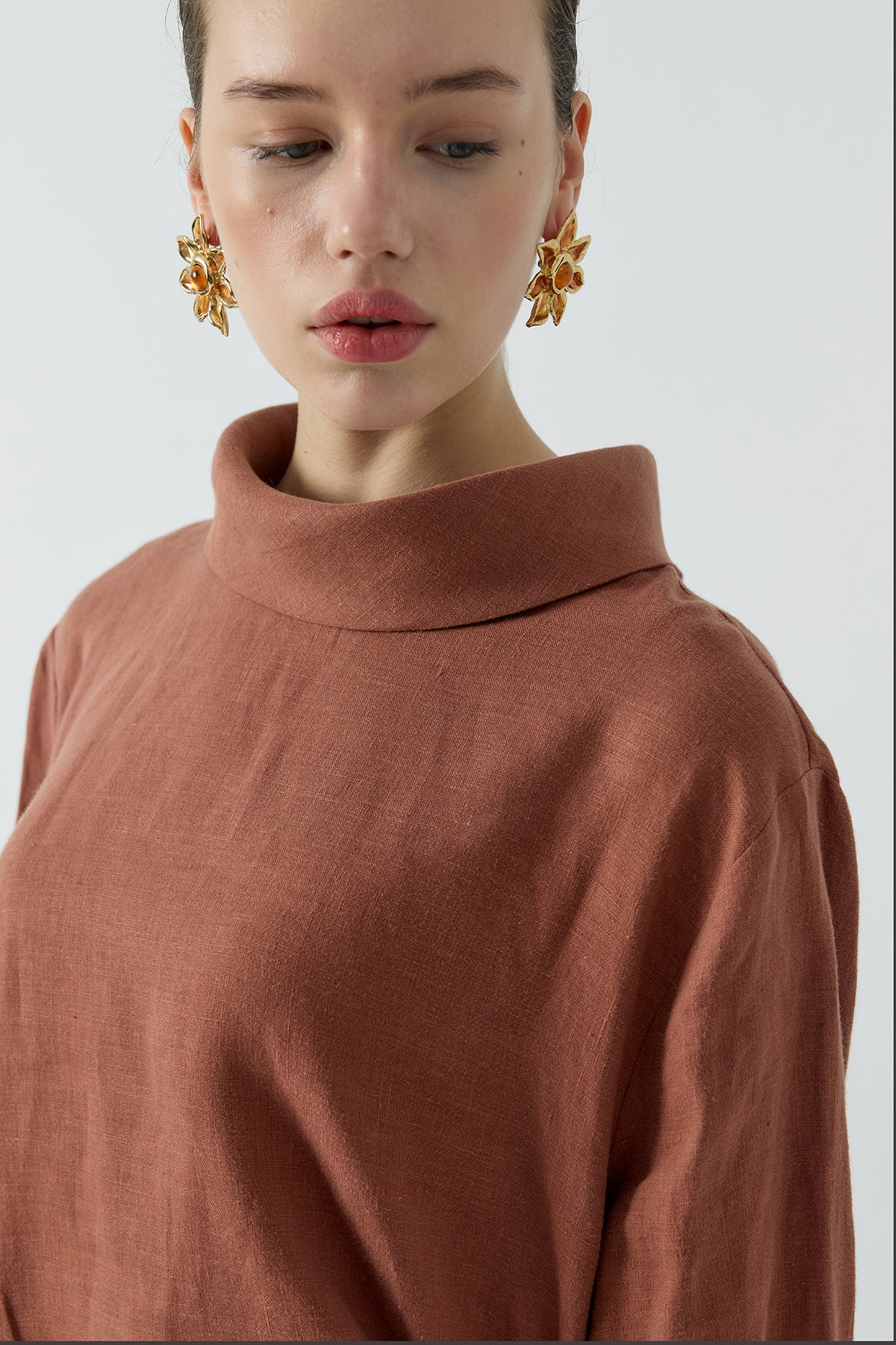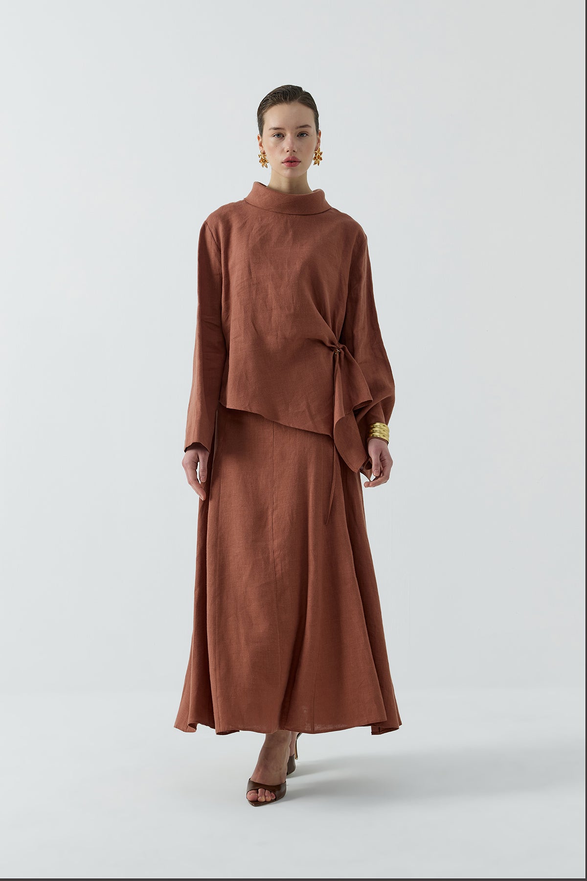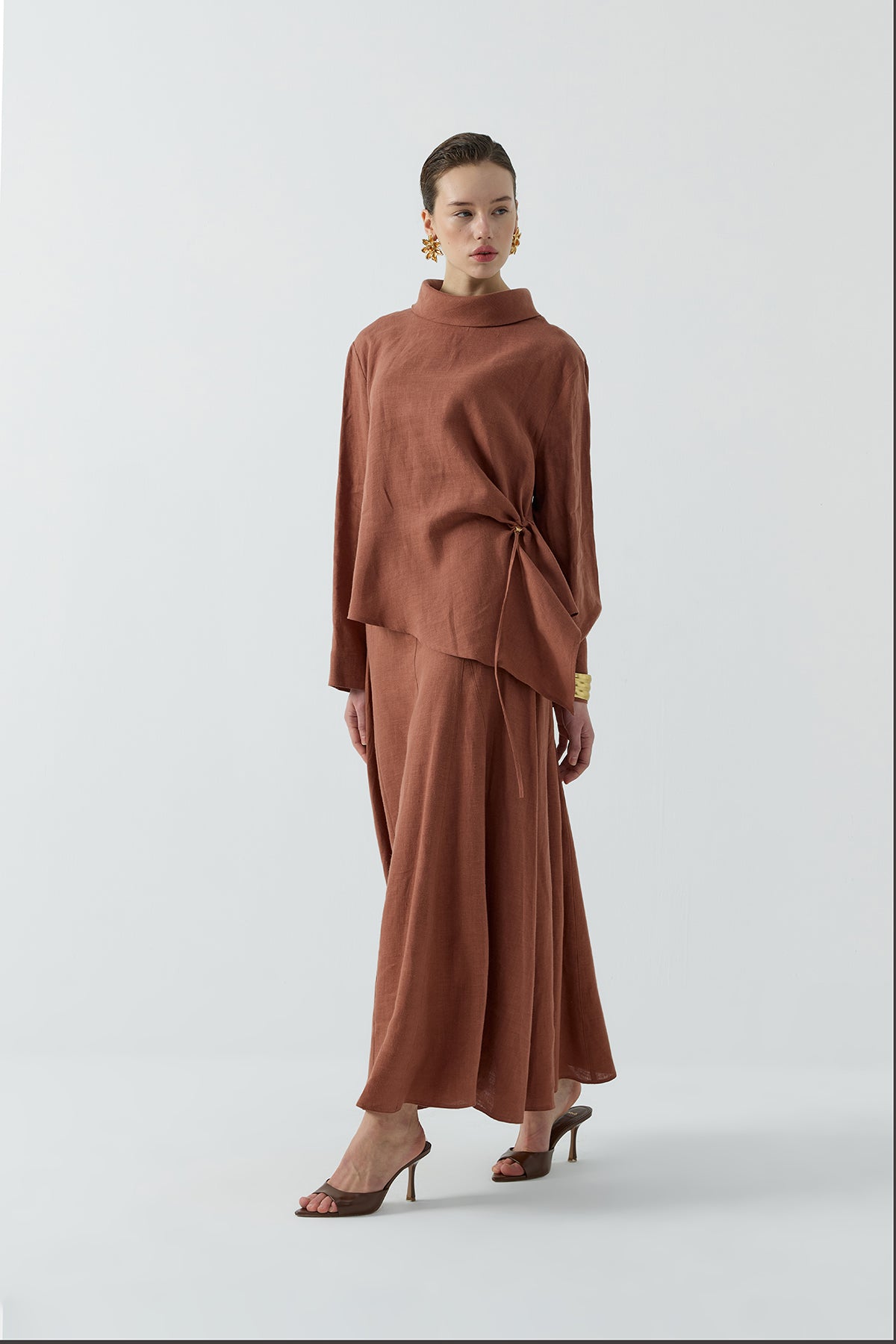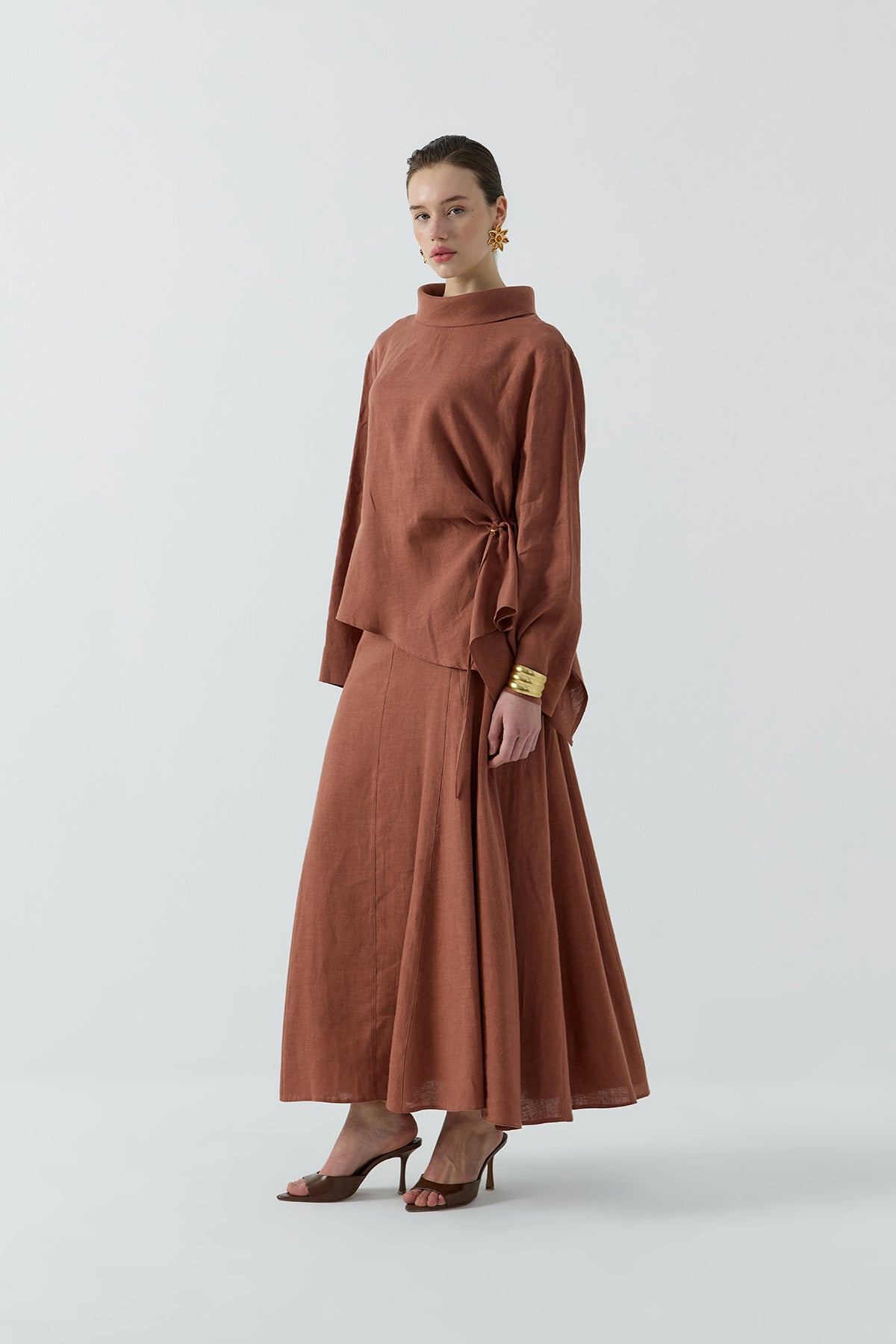 KİREMİT BÜZGÜLÜ KETEN BLUZ