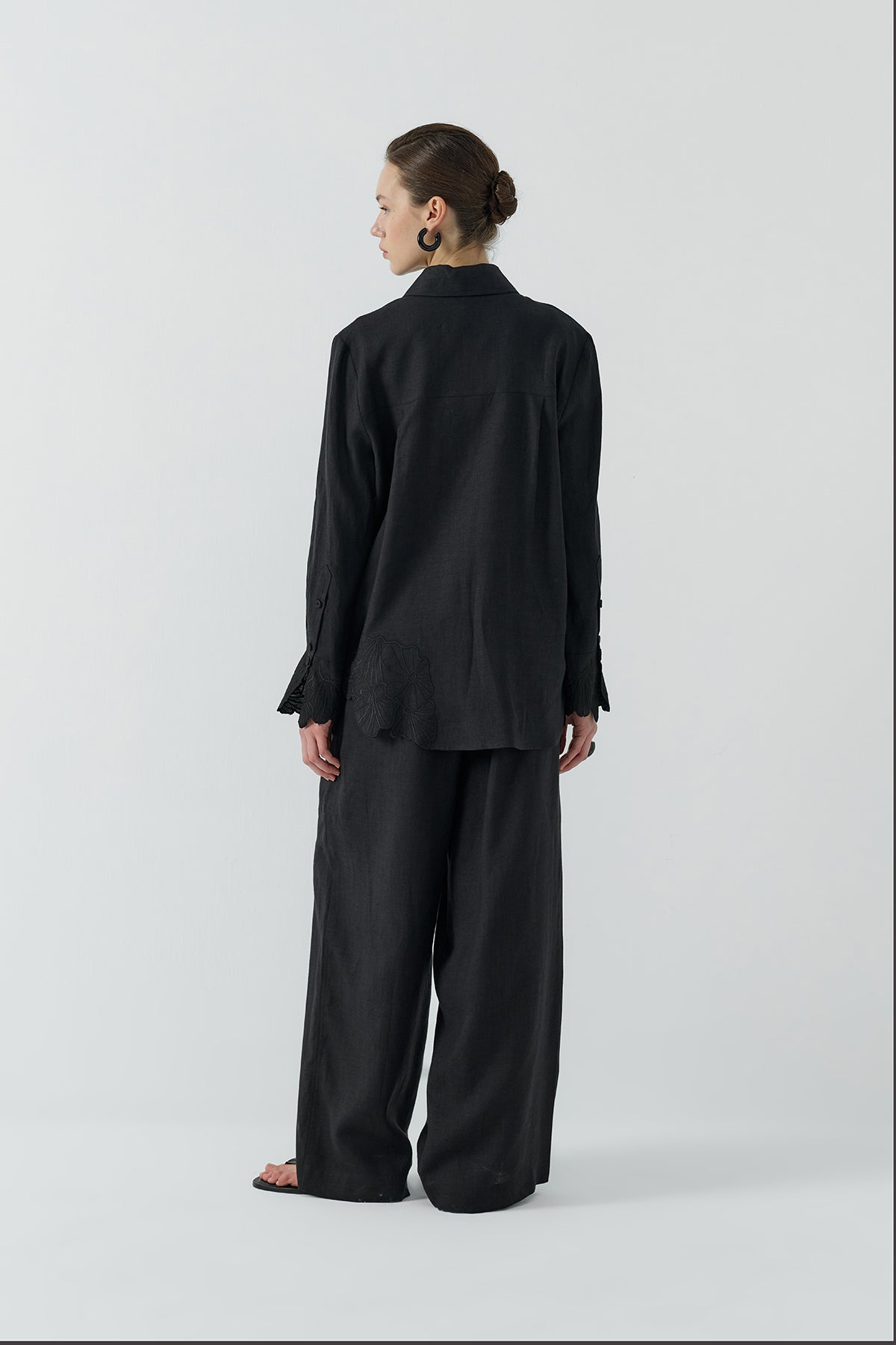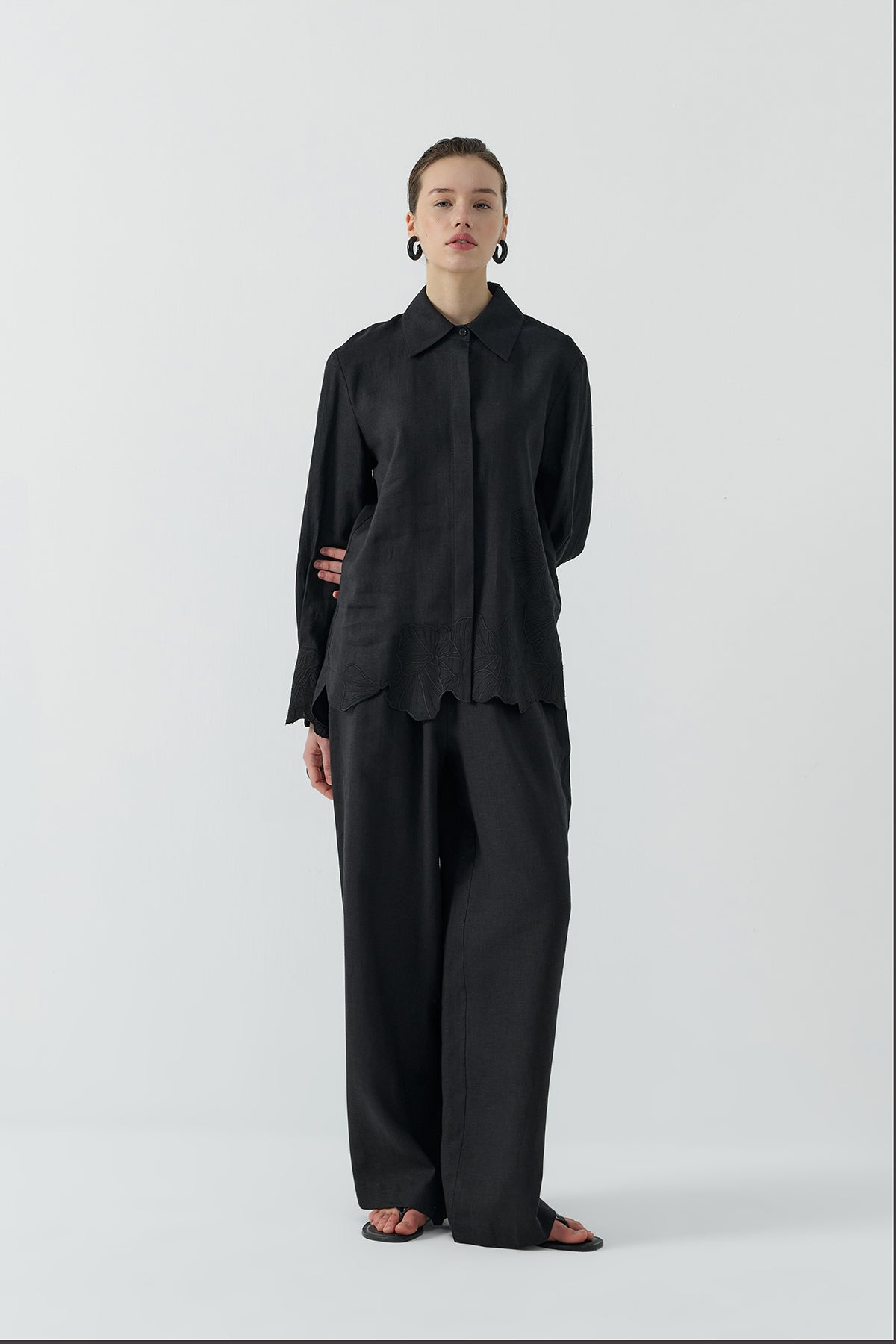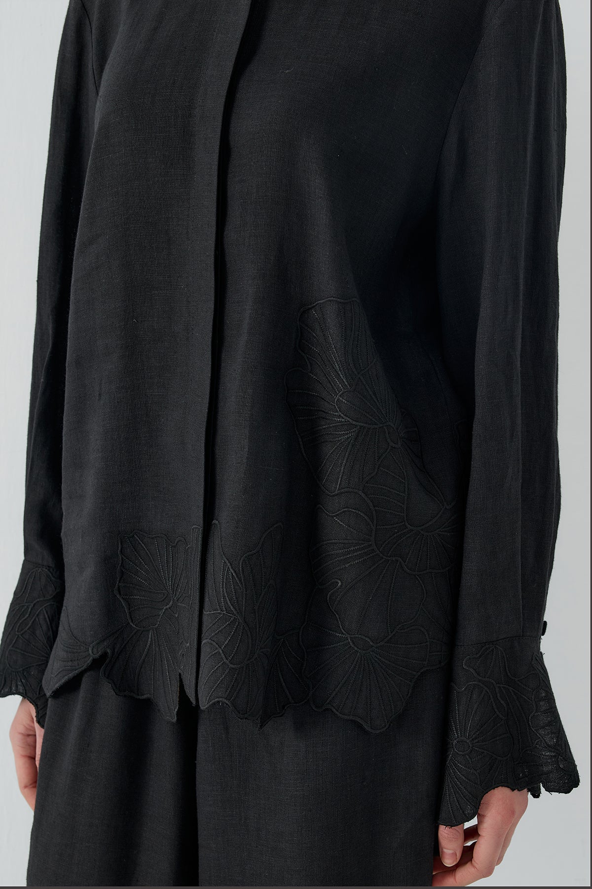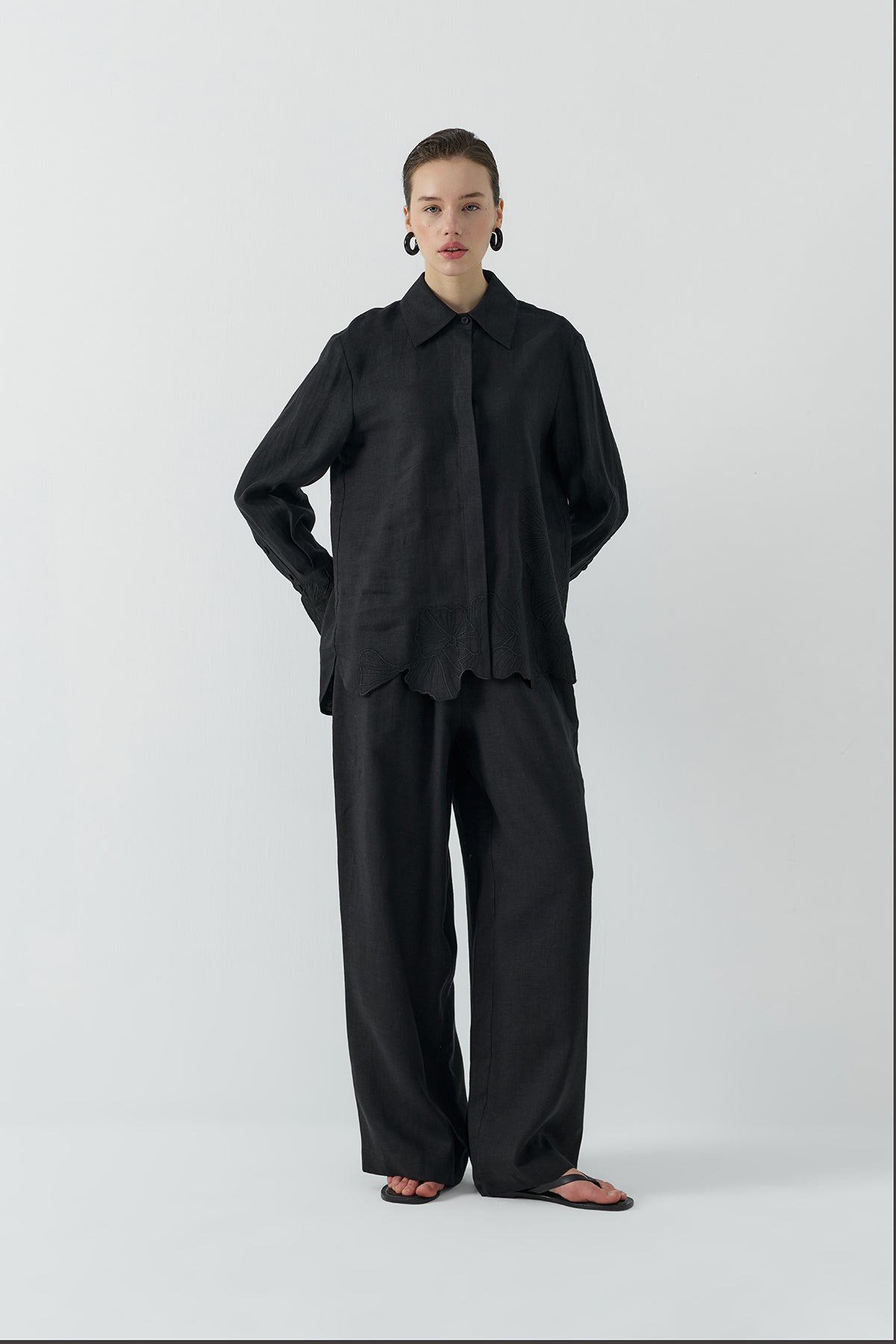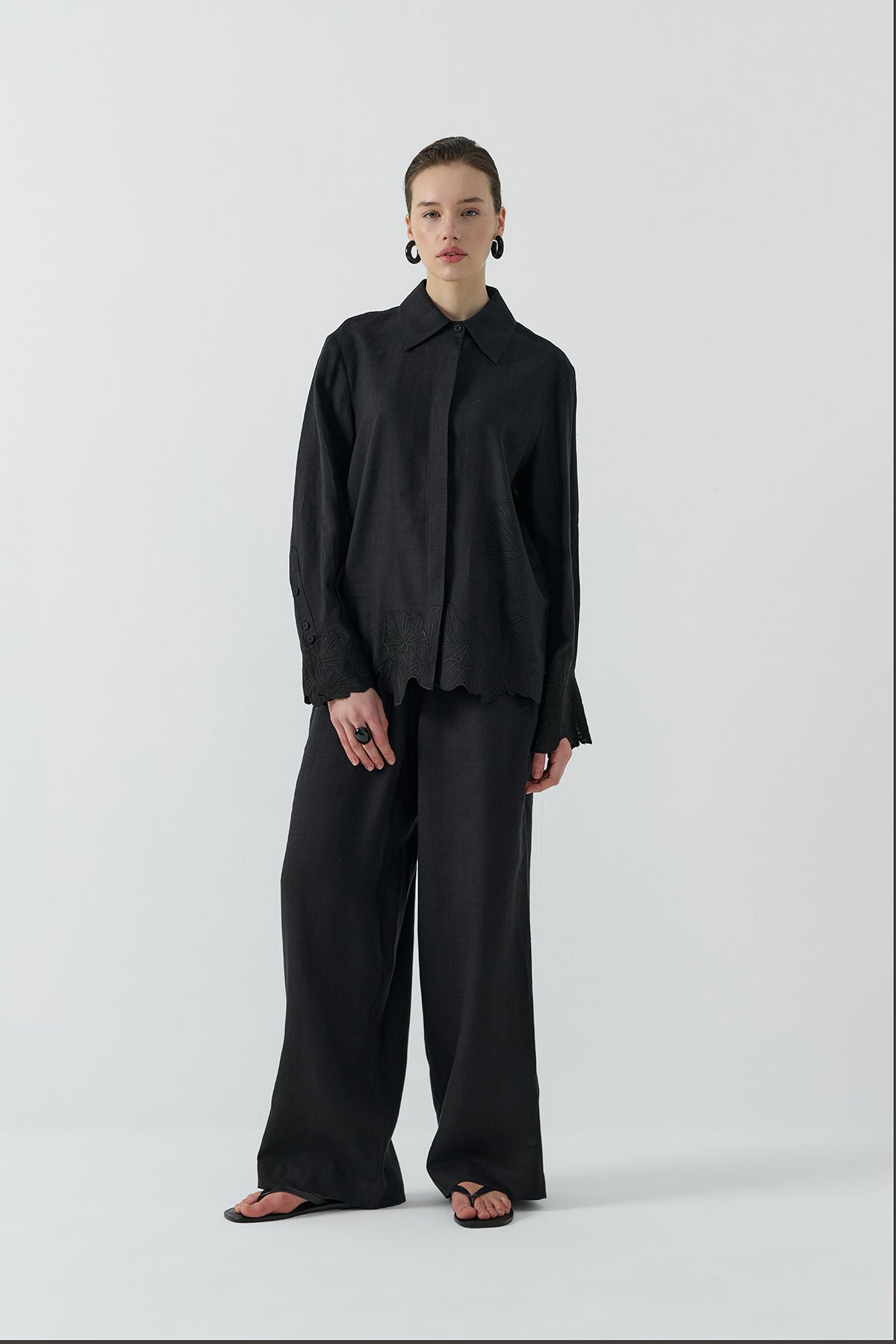 SİYAH NAKIŞLI KETEN GÖMLEK - Clande