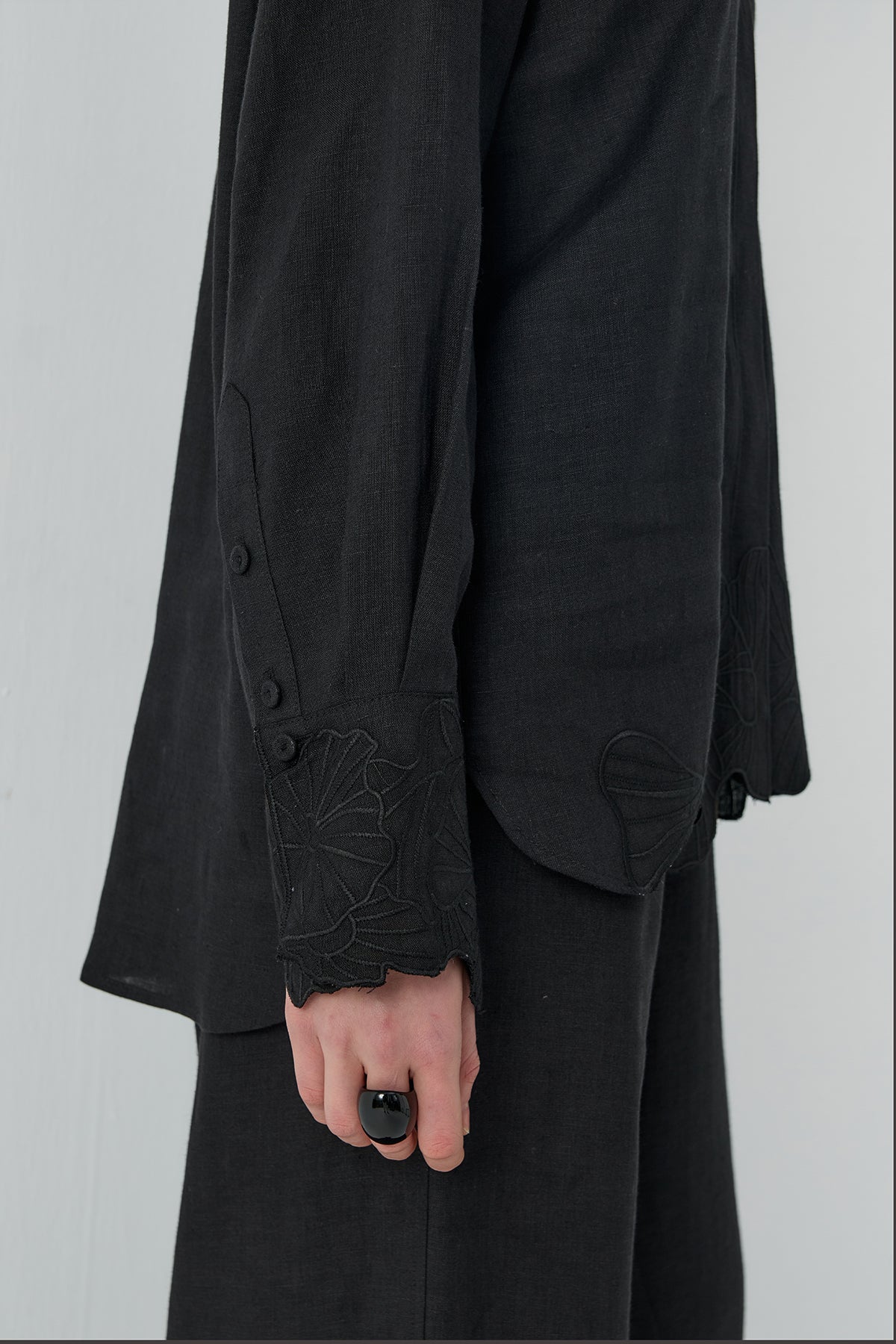 SİYAH NAKIŞLI KETEN GÖMLEK