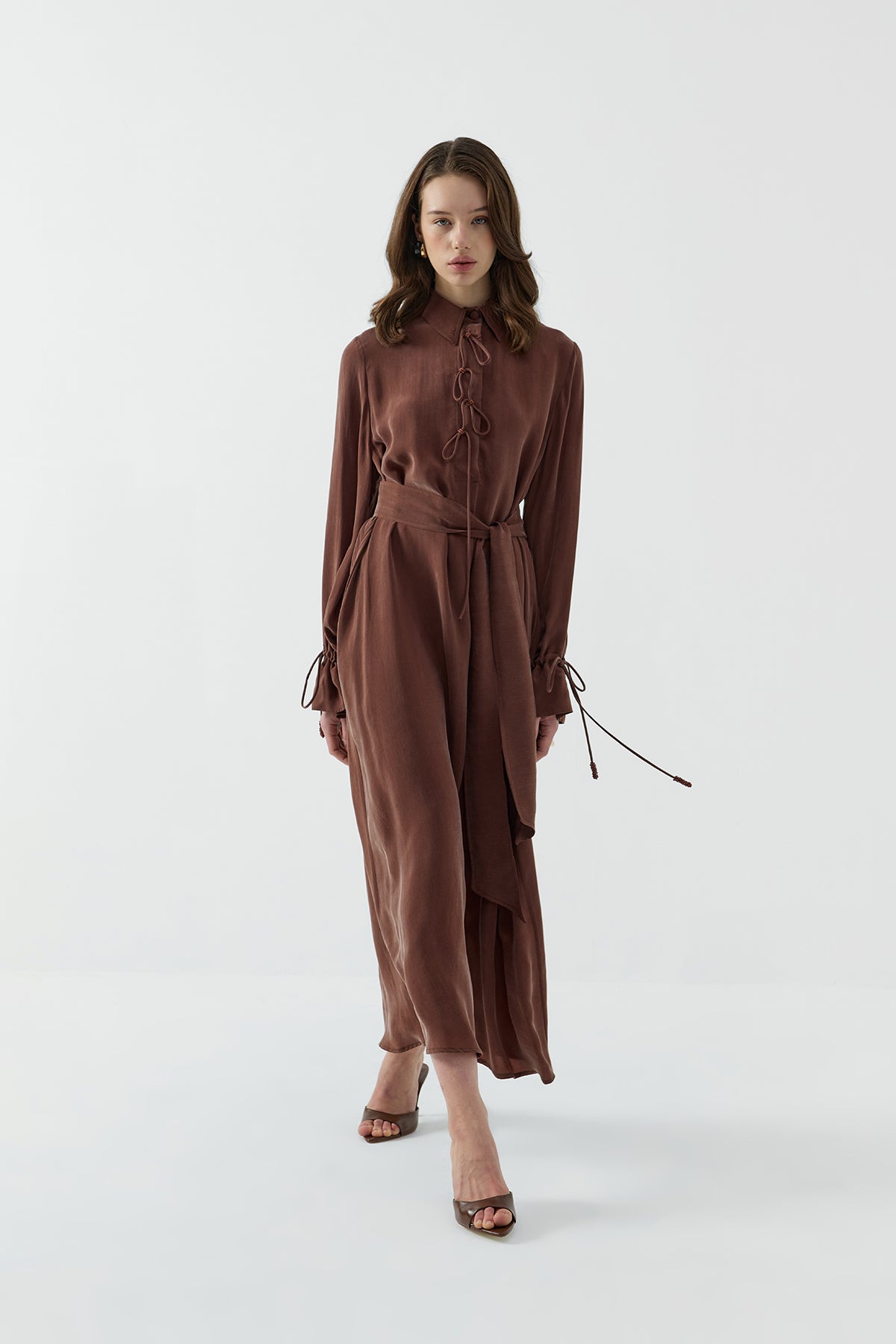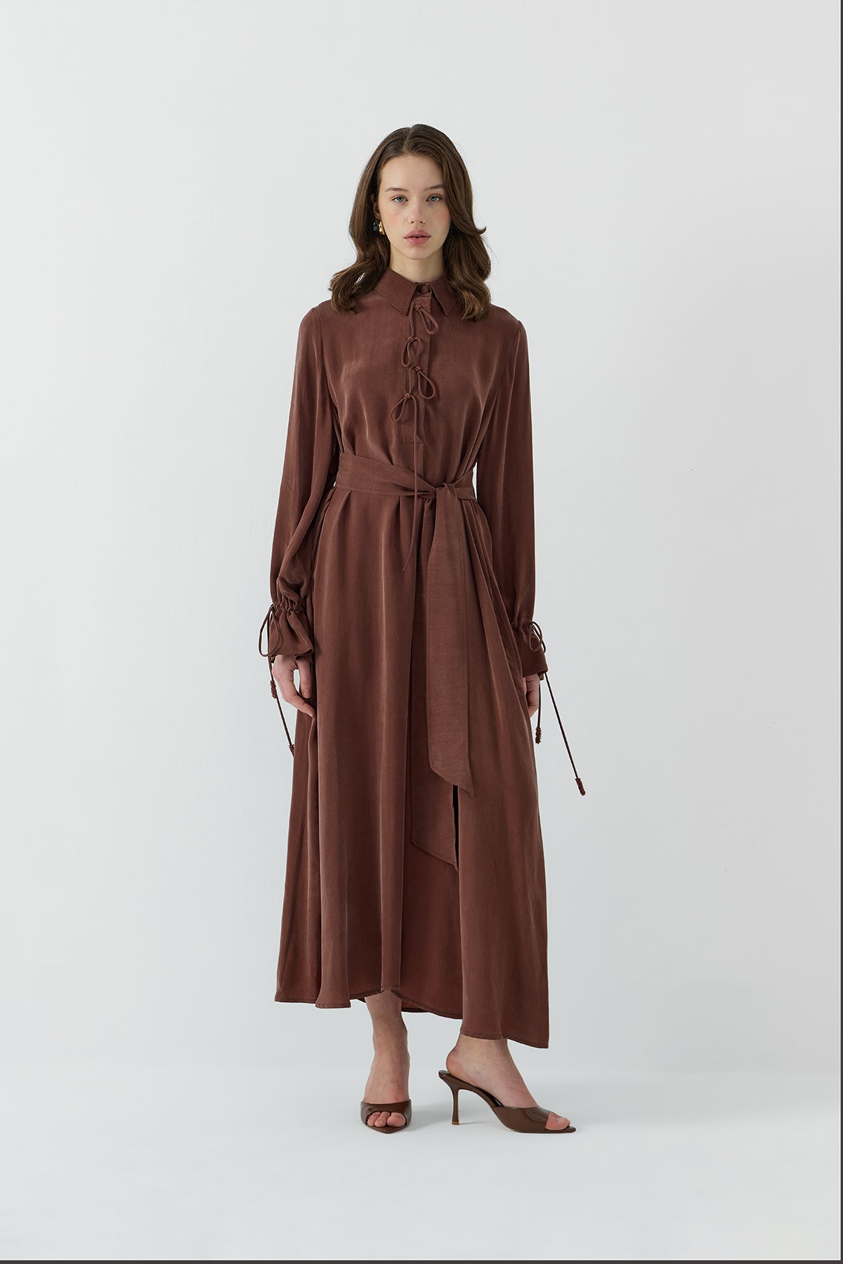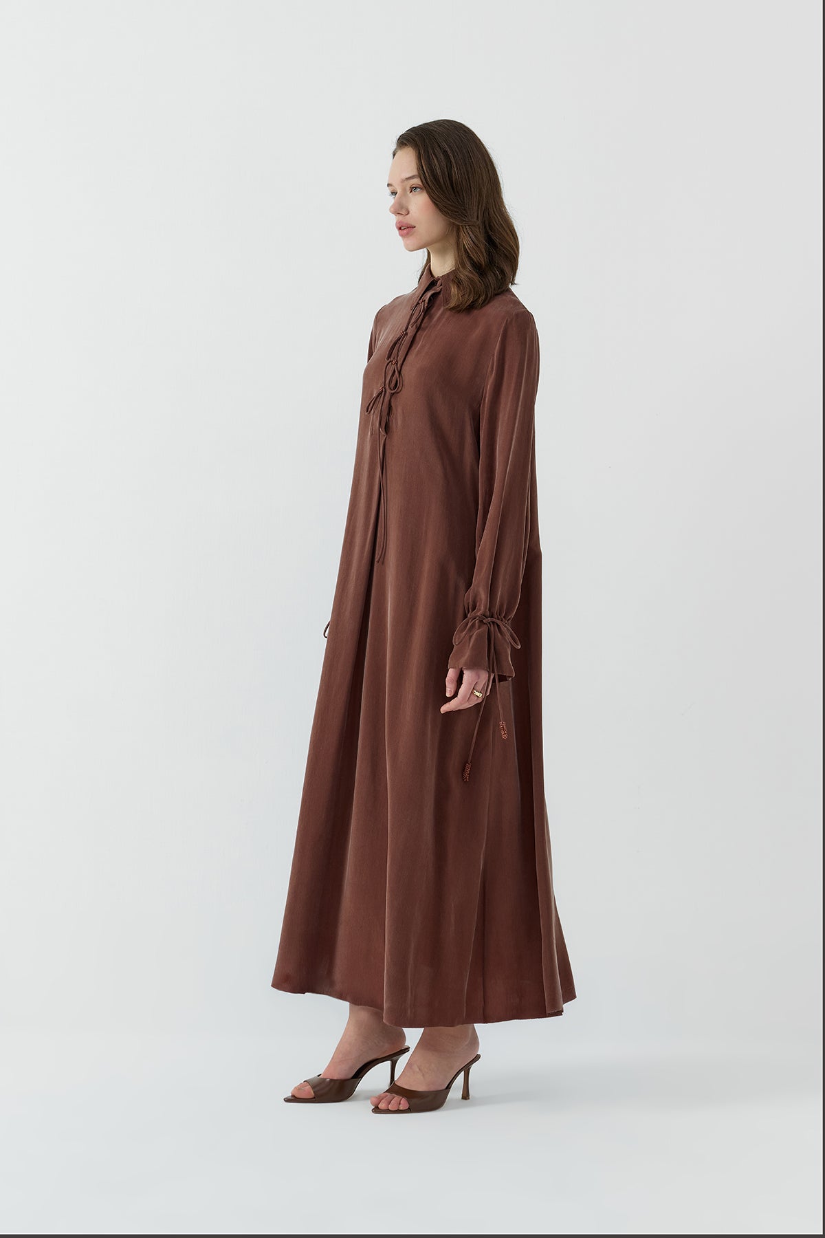 SOĞAN BİYELİ İPEK CUPRO ELBİSE - Clande