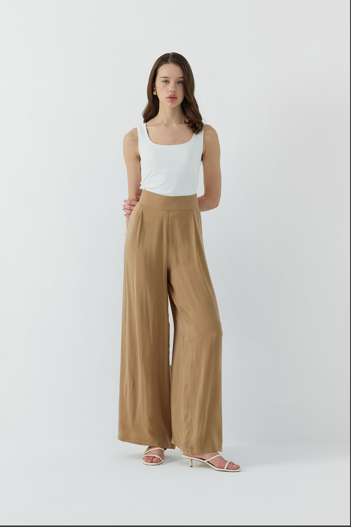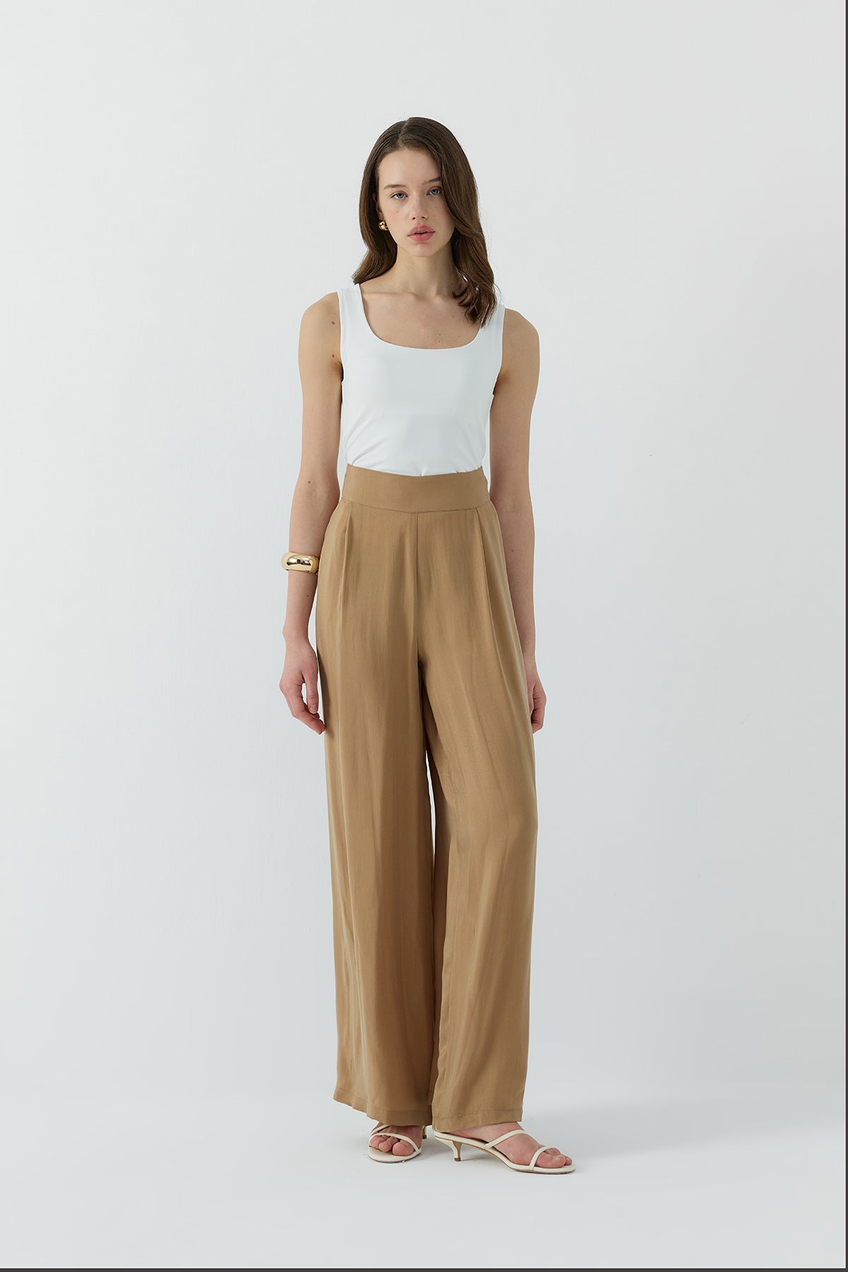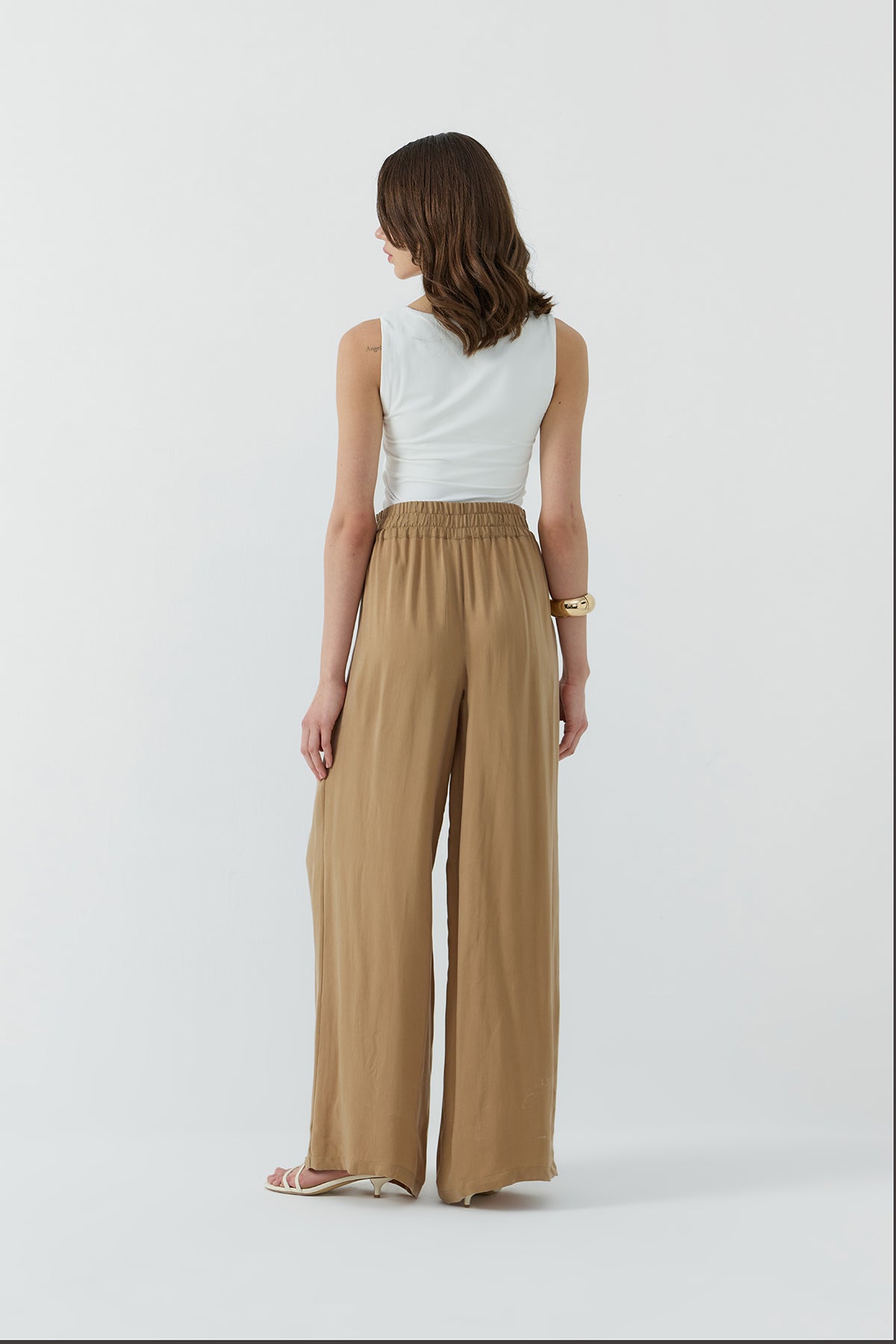 Ürün Açıklaması: Relaxed fit, tam kalıp, astarsız, gizli fermuar kapamalı, yan cepli, yüksek bel, bol paça ipek cupro pantolon